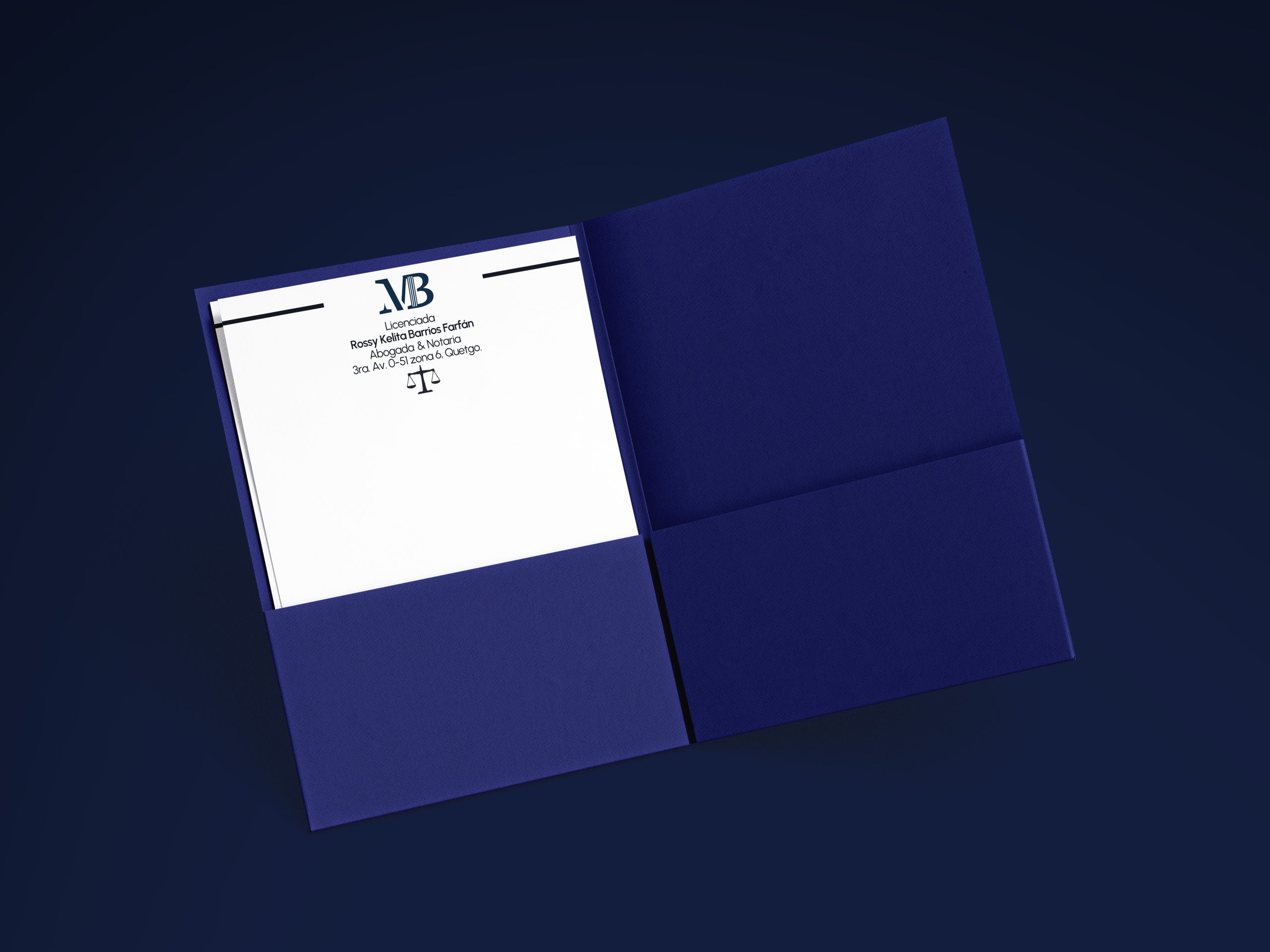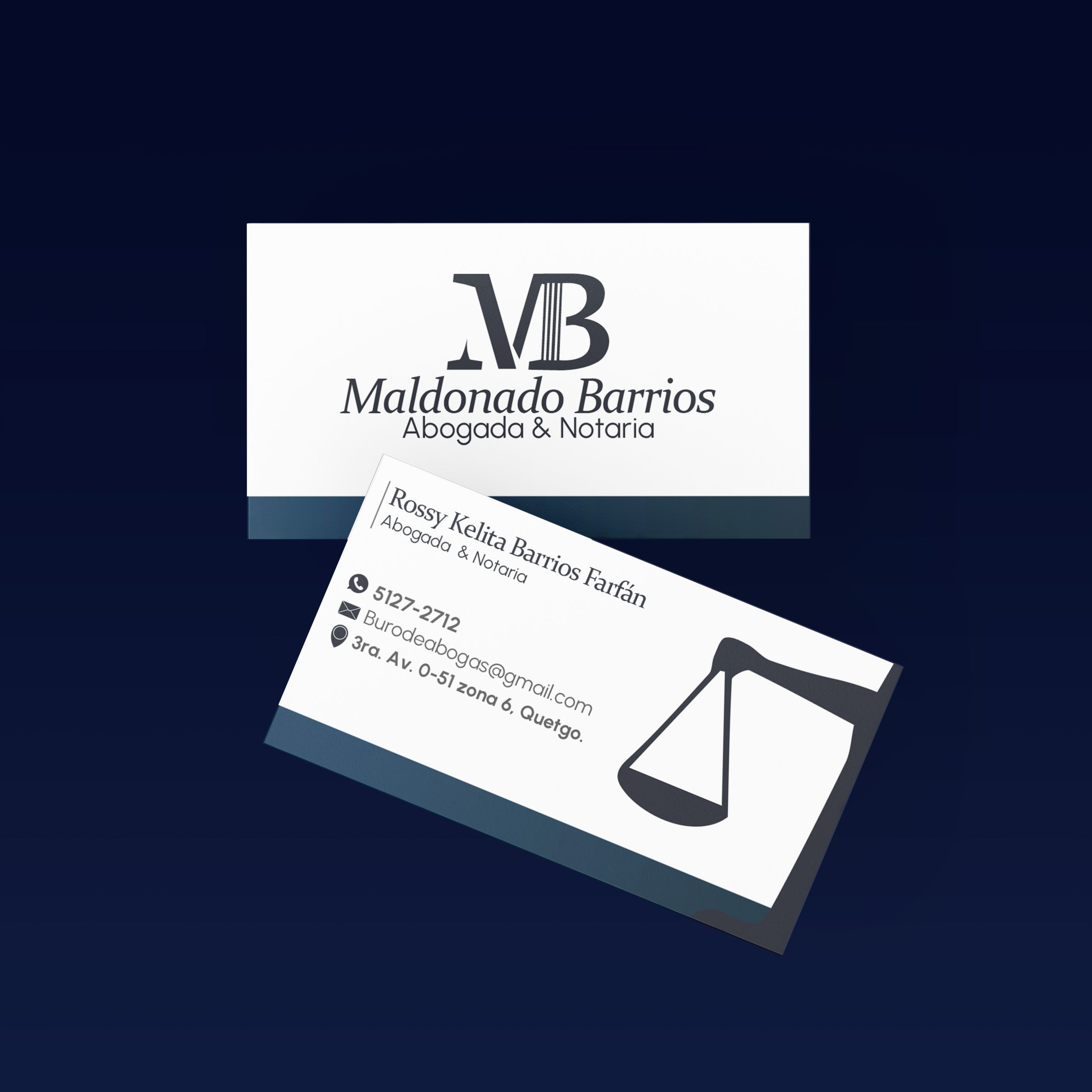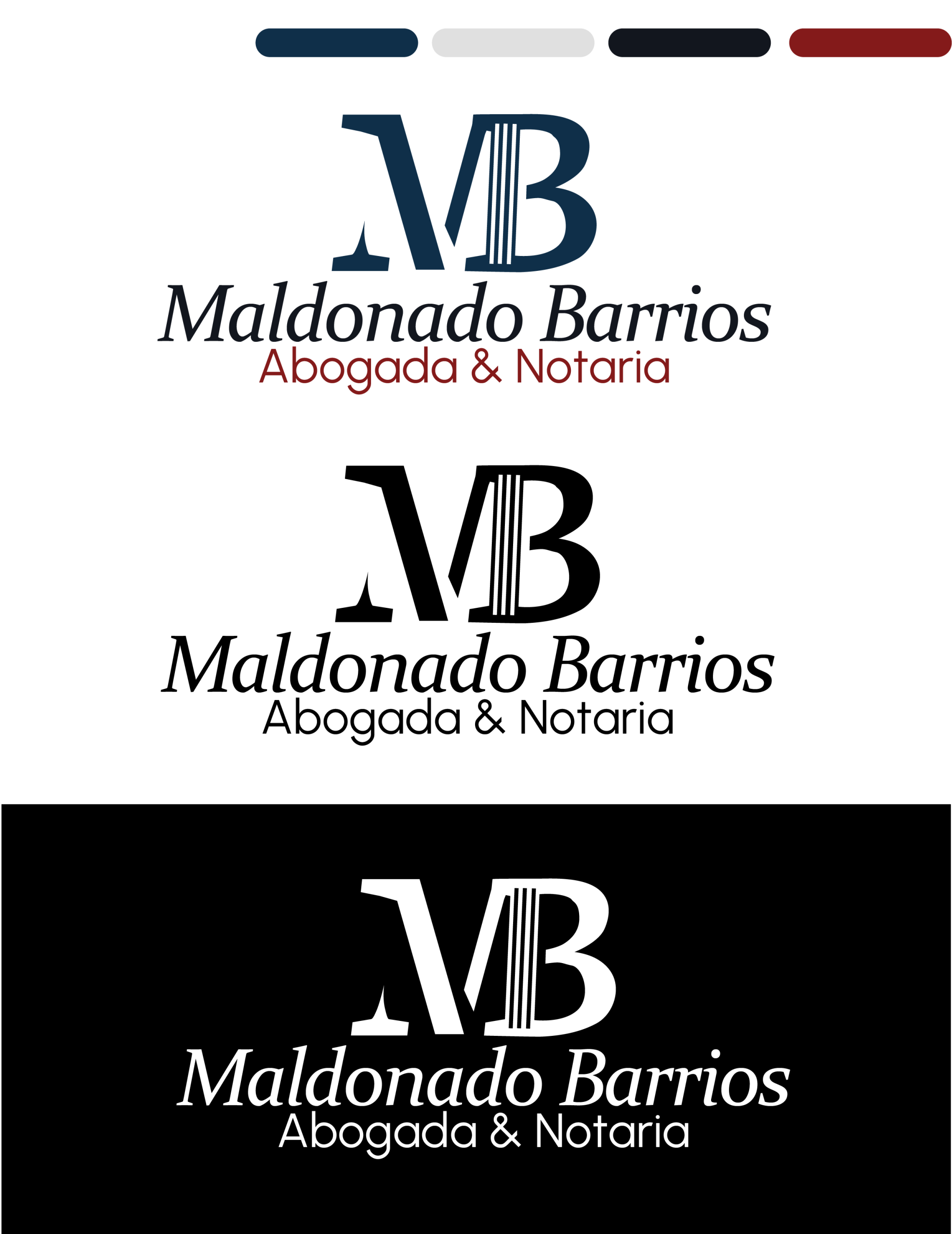 Para la marca Maldonado Barrios, correspondiente a una oficina jurídica, se desarrolló una identidad visual que representa las iniciales principales de la abogada, la M y la B. El diseño del logotipo incorpora un elemento relacionado con el derecho, integrando un pilar en la letra B, símbolo asociado con la justicia, la estabilidad y la estructura del ámbito legal.